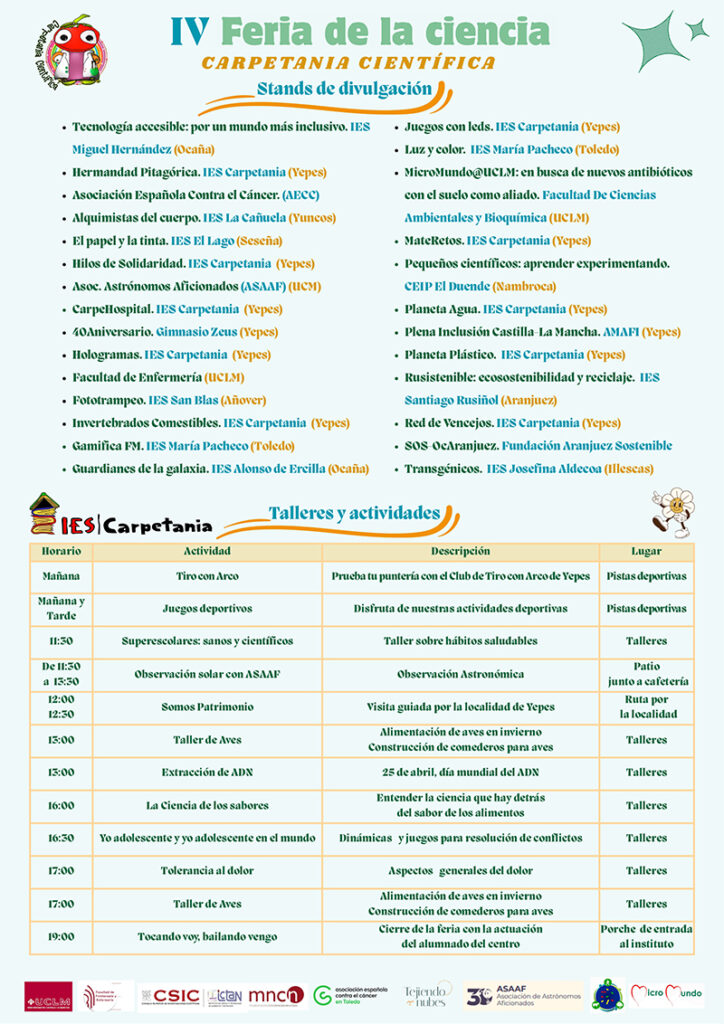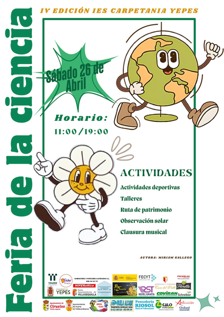 El pasado jueves 27 de marzo, alumnas de1º de bachillerato tuvieron la oportunidad de participar en la XI Feria Madrid es Ciencia, celebrada en IFEMA, gracias a la invitación de ACIERTAS, proyecto educativo de COSCE (Confederación de Sociedades Científicas de España). Las alumnas no solotuvieron la oportunidad e visistrar la feria conociendo los experimentos y demostraciones de diferentes centros educativos, sino que también fueron protagonistas al presentar su proyecto científico «CSI Carpetania». La experiencia en Madrid es Ciencia ha sido muy enriquecedora tanto para el alumnado como para el profesorado. Los estudiantes han desarrollado competencias científicas, comunicativas y digitales.